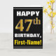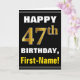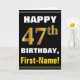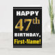 Bold, Black, Faux Gold 47th Birthday w/ Name Card