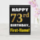 Bold, Black, Faux Gold 73rd Birthday w/ Name Card