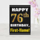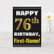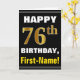 Bold, Black, Faux Gold 76th Birthday w/ Name Card