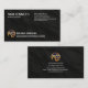 An exquisite black granite cover. Your prestigious name and job title are at the top left corner. Directly across lie the phone, email and office contacts. Near the base of the card is a gold home and tree logo you can use with the business name beside it. Directly underneath the business name are some of the services that you may offer. Change them to suit your service needs.