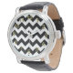 Bold Black & White Chevron Zig Zag Pattern Watch