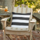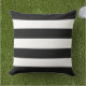 A bold outdoor pillow featuring striking black and white wide horizontal stripes. The high-contrast cabana stripe pattern delivers graphic, modern style to patio furniture, deck seating, or covered porches. A dramatic accent that anchors any outdoor space with confident, clean-lined pattern.