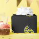 This bold and fun birthday-themed wrapping paper design features the number "6" with a black and yellow stripes pattern, on a black coloured background. Wrapping paper like this might be used when wrapping presents being given to celebrate somebody’s 6th birthday, or a couple’s 6th wedding anniversary, or some other sixth event or milestone. [~Z0000383]