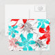 This fun design features bold, colourful blossom silhouettes and outlines in red, turquoise and black, on a white background.
