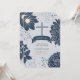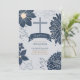 Illustrated floral accents in deep slate blue hues sprinkle across this boyishly handsome Baptism invitation against a pale blue background.