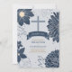 Bold Blue Botanicals with Cross Baptism Invitation