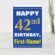 Bold, Blue, Faux Gold 42nd Birthday w/ Name Card