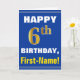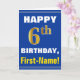 Bold, Blue, Faux Gold 6th Birthday w/ Name Card