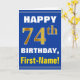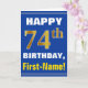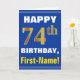Bold, Blue, Faux Gold 74th Birthday w/ Name Card