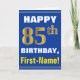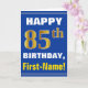 Bold, Blue, Faux Gold 85th Birthday w/ Name Card