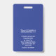 Blue and white facility entry badge with bold vertical text is ideal for department specific clearance. Easily upload multiple logos and an employee photo. This can hang on a matching lanyard that also holds a company key card. This company badge is versatile for royal blue, navy blue, or blue and grey company lanyards. Perfect for engineering, healthcare, or law enforcement. Perfect for government facilities where staff have different clearances.