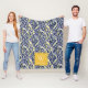 Bold Blue Yellow Abstract Classy Ikat Monogram Fleece Blanket
