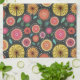 Bold boho Scandi folk flower pattern Tea Towel