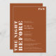 Bold simple boho terracotta earth tones wedding rehearsal dinner with the night before written in oversized bold font. Perfect rehearsal wedding idea.