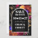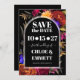 A black Boho arch with a transparent edge frames you Save the Date details. The bold white text gives this fall Save the Date a trendy vibe. The florals are pure fall. Rich burgundy red, bright orange with hits of purple and pink. The back is also black with a fall bouquet. This item is part of the Modern Autumn Floral Collection. Message me if you need help finding matching items. My name is Nelda and I'd love to help.