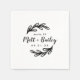 This modern rustic logo-style design has a bold leafy wreath and mix of modern typography. Personalise the template with the bride and groom's names or monogram initials. Add your wedding date, the city, state or venue name or any other custom text. Use the design tools to choose any background colour, edit the fonts or upload your own photos to create completely custom wedding napkins to match your wedding colours and style!