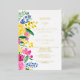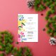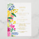 Bold bright country floral watercolor wedding invitation with real gold foil and with hand painted bright and vibrant pink, yellow, green floral watercolor bouquet, perfect for outdoor, summer small wedding ceremony.