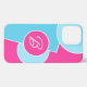 Beautiful contemporary bright hot pink, light pastel, aqua turquoise blue, and white coloured circles pattern. With room to customise or personalise with a name monogram or initial of your choice. Funky, elegant, stylish, and eclectic design for the fancy artistic fashionista, the artsy fashion diva, popular hip trendsetter, vintage retro art style, and abstract digital geometric motif lover who wants to protect their phone from dust and dirt, wear and tear. This design is available for iPhone 6, 7, and 8 Plus, 10 or X, XR, XS, 11, 12, 13 Mini, 14, and 15 Pro Max cellphone cases. Show off your style, look fashionable, and feel stylish with a unique design on a mobile device accessory of your choice.