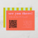 This vibrant and playful QR code RSVP wedding enclosure card features a burst of colour! Fun bright pink fonts on a cheerful red background make this a joy to add to your invitation suite. The QR code makes replying a breeze. Turn it over to another fun surprise - green and blue stripes on the backside. Pair with the Blooming Joy wedding invitation collection.