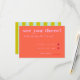 This vibrant and playful RSVP wedding enclosure card features a burst of colour! Fun bright pink fonts on a cheerful red background make this a joy to add to your invitation suite. Turn it over to another fun surprise - green and blue stripes on the backside. Pair with the Blooming Joy wedding invitation collection.