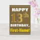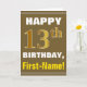 Bold, Brown, Faux Gold 13th Birthday w/ Name Card