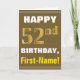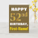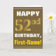 Bold, Brown, Faux Gold 52nd Birthday w/ Name Card