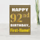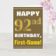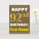 Bold, Brown, Faux Gold 92nd Birthday w/ Name Card