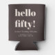 This birthday can cooler in brown features bold, modern typography with a rich neutral color palette for a stylish milestone celebration. The front design highlights a playful “hello fifty” message, while the layout keeps the overall look clean and elevated. Personalize the name, date, or party details to coordinate with a 50th birthday gathering, backyard party, or evening celebration. A fun and functional detail for drinks at milestone birthday events.