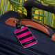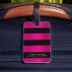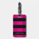 Bold Brushed Hot Pink Metal & Black Stripes Luggage Tag