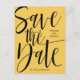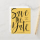 Bold Calligraphy in black colour against yellow mustard background for this trendy and modern save the date.
