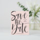 Bold Calligraphy in Black colour against blush pink background for this trendy and modern save the date.