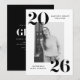 Invite guests to your graduation party with our modern Bold 2025 graduation party invitations. The stylish graduation party invites display the graduate's photo framed in white with 2025 in bold black lettering at the top left and bottom right corners. Personalize the front of the photo graduation party invites by adding the graduate's name & school name. The invite reverses to display your party details in white lettering against a solid black background.