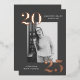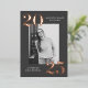 Modern graduation party invitations featuring the graduate's vertical photo framed in charcoal grey with 2025 in bold, rose gold foil lettering at the top left and bottom right corners. Personalise the front of the photo graduation party invites with the graduate's name and school name. The foil graduation invitation reverses to display your party details in white lettering with a charcoal grey background. The background colour can be changed to a colour of your choice with our edit design feature. The charcoal grey graduation party invites work perfectly for both high school and college graduation parties.