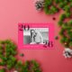 Modern graduation party invitations featuring the graduate's horizontal photo framed in hot pink with 2025 in bold, gold foil lettering at the top left and bottom right corners. Personalise the front of the photo graduation party invites with the graduate's name and school name. The foil graduation invitation reverses to display your party details in white lettering with a hot pink background. The background colour can be changed to a colour of your choice with our edit design feature. The hot pink graduation party invites work perfectly for both high school and college graduation parties.