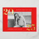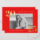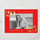 Modern graduation party invitations featuring the graduate's horizontal photo framed in red with 2025 in bold, gold foil lettering at the top left and bottom right corners. Personalise the front of the photo graduation party invites with the graduate's name and school name. The foil graduation invitation reverses to display your party details in white lettering with a red background. The background colour can be changed to a colour of your choice with our edit design feature. The red graduation party invites work perfectly for both high school and college graduation parties.