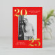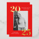 Modern graduation party invitations featuring the graduate's vertical photo framed in red with 2025 in bold, gold foil lettering at the top left and bottom right corners. Personalise the front of the photo graduation party invites with the graduate's name and school name. The foil graduation invitation reverses to display your party details in white lettering with a red background. The background colour can be changed to a colour of your choice with our edit design feature. The red graduation party invites work perfectly for both high school and college graduation parties.