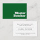 Bold and clear typographic design business cards for a Butcher shop retail business. Designed to convey your professionalism in your Master Butcher business.