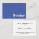 Butcher business card. Bold and clear typographic design business cards for a Butcher shop retail business. Designed to convey your professionalism in your Master Butcher business. Blue and white.