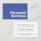 Bold and clear typographic design business cards for a Financial Services Advisor or Financial Professional. Designed to convey your professionalism in your finance advice company or financial advisor role. Blue and black colors.