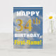 Bold, Cloudy Sky, Faux Gold 34th Birthday + Name Card