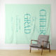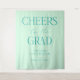 Create an elegant and trendy photo backdrop for your graduation party. Design features "Cheers to the Grad" in modern elegant typography. Shown in mint green and turquoise, but all colours are editable by you. Personalise the template to add your graduate's name and year. © Kimbellished, LLC
