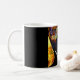 A mug with an elephant head in bold vibrant colours of yellow, green, orange and more giving it a random abstract look to it. Set on a black background. Personalise with a name.