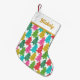 Add some fun and whimsy to your holiday celebration with this bold Christmas stocking, featuring an overlapping tissue paper Christmas trees design on both the front and the back. A faux gold ribbon band adds a touch of lavishness. Easy to personalise! Font and text colour can be customised, if desired.