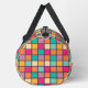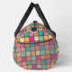 The bag features a colourful patchwork design with squares of the same size arranged in a grid pattern, creating a vibrant and eye-catching appearance.