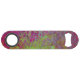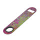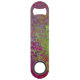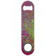 This bold, colourful bottle opener features a splatter paint, abstract, grunge effect in magenta, bright neon green and orange.