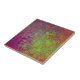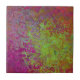 This bold, colourful decorative ceramic tile features a splatter paint, abstract, grunge effect in magenta, bright neon green and orange.