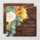 This bold country sunflower | wood wedding invitation is perfect for your simple classic boho summer backyard barn wedding. Design features a bouquet of vintage watercolor yellow gold and rustic orange sunflowers, elegant modern sage green eucalyptus greenery, and a white ivory rose. The design is ideal for a casual outdoor minimalist fall foliage wedding. Please feel free to contact us with any questions regarding the product's design; cheers!