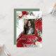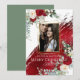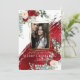 Your Photo Seasons' Greetings - Triple Gold Photo frame - features a big bold paint stroke in a metallic crimson red diagonally across the page and behind the photo frame. Eucalyptus greenery and scarlet red and ivory cream peony flower bouquets grace the corners. Design created by © WhimsicalArtwork™ Customise text, font style, colour and size. We created this template is to make it easy for you to personalise with your own information. This is part of a complete Wedding Stationery Suite with matching wedding, baby shower and other event stationery.
