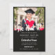 A graduation announcement and graduation party invitation in one! Show off your graduate's achievement with this bold typography graduation announcement with their photo in the spotlight, with Grad written in a bold white script in a modern style across the bottom of the photo. Personalize the custom text with the year, your graduate's name, the school they graduated from, and the degree they've gotten. Add the graduation celebration invite on the back of the card, beneath a second photo of the graduate. He did it! is written across the second photo, but as the text is editable, you can change it to She did it or They did it, depending on the pronoun of the graduate. The text is a stark white against a black background.