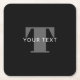 Bold Editable Text | Black White & Grey Square Paper Coaster